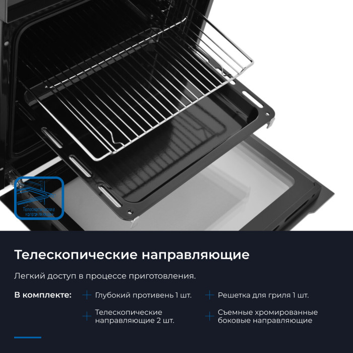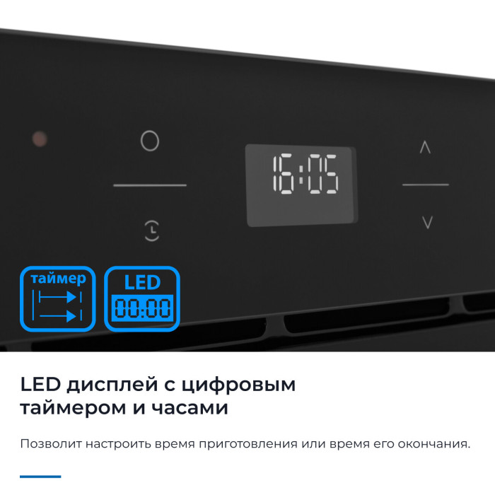 Вентилятор охлаждения, Встроенные часы, Двухуровневое приготовление, Дисплей, Хромированные направляющие