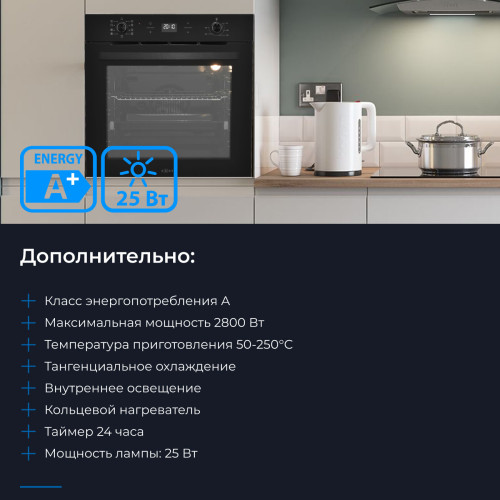 Электрический духовой шкаф ZUGEL ZOE602B - это современное и функциональное решение для вашей кухни. Черный цвет и стильный дизайн делают его отличным дополнением к любому интерьеру.