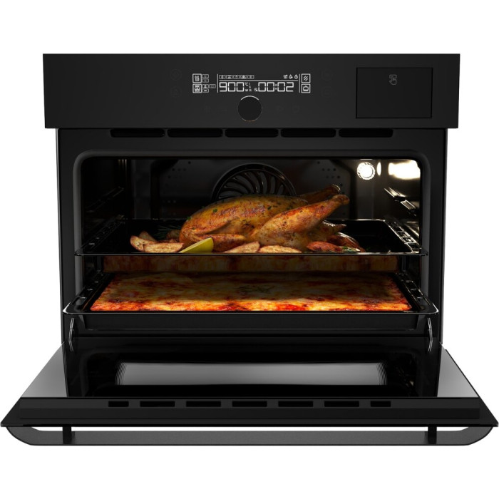 Встраиваемый духовой шкаф HIBERG MS-VM 5115 SMART с функцией готовки на пару, грилем, разогревом блюд с помощью микроволн, сенсорной панелью с запрограммированными рецептами — это уникальное устройство, созданное для комфортного приготовления и настоящих кулинарных шедевров!
