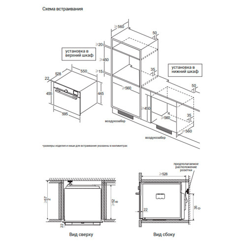 большой гриль, верхний нагрев + конвекция, верхний нагрев + нижний нагрев, верхний нагрев + нижний нагрев + конвекция, гриль + конвекция, конвекция