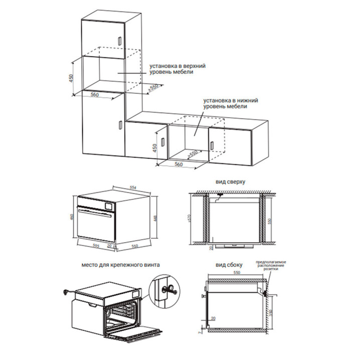 большой гриль, верхний нагрев + конвекция, верхний нагрев + нижний нагрев + конвекция