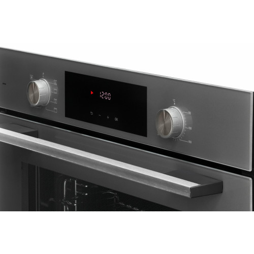 Многофункциональный духовой шкаф объёмом 73 л. станет стильным дополнением для Вашей кухни и поможет в создании кулинарных шедевров для всей семьи. Среди преимуществ можно выделить: 8 режимов: нижний нагрев, верхний нагрев, нижний верхний нагрев, гриль, гриль конвекция, двойной гриль конвекция, размораживание, свет. Программируемый таймер с автоотключением позволит Вам наслаждаться свободным временем, пока Ваше блюдо готовится. Утапливаемые переключатели - при нажатии фиксируются внутри панели управления. Таким образом, панель управления становится абсолютно плоской. Панель управления из закаленного стекла стильное и современное решение для Вашей кухни. Идеально сочетается с варочными панелями из стеклокерамики и закаленного стекла. Дверца с двойным стеклом SCHOTT CERAN гарантирует высокую прочность и безопасность, а внутренние покрытие LOW-E поможет избежать лишние теплопотери и обеспечит высокую энергоэффективность прибора. Прочные и износостойкие хромированные направляющие для противней облегчают эксплуатацию прибора. Благодаря телескопическим направляющим Вы сможете без труда поместить и достать противень: достаточно открыть дверцу и потянуть его на себя. В этот момент движутся только направляющие. Встроенное освещение облегчит наблюдение за процессом приготовления. Высокопрочные петли обеспечивают бесшумное и плавное закрытие дверцы духовки при толчке любой силы. В комплекте: Хромированная решетка, Универсальный противень с антипригарным покрытием Easy Clean. Общие данные: Габариты: 59.5x59.5x56.7 см Размер ниши для встраивания в столешницу (ШхГхВ), мм: 560х550х600 Размер ниши для встраивания в колонну (ШхГхВ), мм: 560х550х600 Объем: 73 л Гриль: есть Конвекция: есть Подсветка духовки: есть Количество режимов работы: 8 Самоочистка: Эмаль легкой очистки Easy Clean Режимы работы: Нижний нагрев, верхний нагрев, нижний верхний нагрев, гриль, гриль конвекция, двойной гриль конвекция, размораживание, свет Управление и функции: Дисплей: есть Материал панели управления: стекло Утапливаемые переключатели: есть Часы: есть Таймер: есть Безопасность: Количество стекол: 2 Дополнительная информация: Класс энергоэффективности: A Максимальная температура, C: 250 Мощность подключения, кВт: 2,5 Мощность гриля, кВт: 2450 Телескопические направляющие, 1 ряд: есть Тип направляющих: хромированные Съемное стекло для легкой очистки: есть Наличие шнура питания: есть Наличие вилки: есть Вес, кг: 29 Комплектация: Хромированная решетка, Универсальный противень с антипригарным покрытием Easy Clean