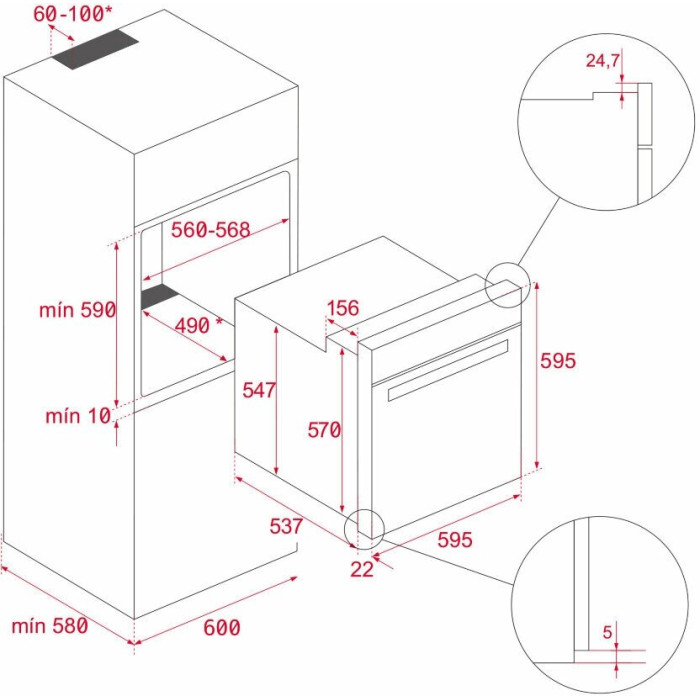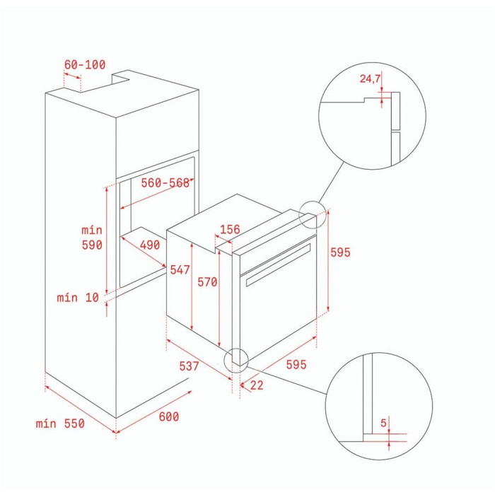 Встраиваемый независимый электрический духовой шкаф TEKA HBB 605 STAINLESS STEEL Особенности: Мультифункциональный духовой шкаф Стальная матовая панель управления 6 режимов приготовления + Hydroclean Механический таймер с отключением на 120 мин Стандартный доводчик двери Стандартный гриль Протектор для защиты от ожога грилем Механический быстрый разогрев Разморозка, ECO режим Инновационное покрытие Slippery Тангенциальная система охлаждения (вентилятор с 1-й скоростью) Рельефное дно камеры с углублением для воды для чистки Hydroclean Внутренняя поверхность дверцы из закалённого стекла 2-хслойная термоизолированная дверца 1 съёмное внутреннее стекло Температурный диапазон 50-250 °С 5 уровневые хромированные направляющие закреплены без отверстий в камере (чтобы избежать потерь тепла) Увеличенный зазор между камерой и частью шкафа, касающейся мебели (для улучшения термоизоляции) Увеличенная поверхность противня: 459*353 мм (было 412*342 мм, помещается 35 печенек вместо 30) Противни без отверстий по периметру для лучшей чистки Воздушные зазоры по всему периметру между камерой и противнем для лучшей циркуляции горячего воздуха Подсветка лампой накаливания 25 В Кабель 110 см Характеристики: Объем: 70 литров Класс энергопотребления: А Габариты (ВxШxГ): 595x595x559 мм Цвет: Нержавеющая сталь/Черное стекло Принадлежности: 1 глубокий противень (50 мм) с покрытием Slippery 1 усиленная решётка