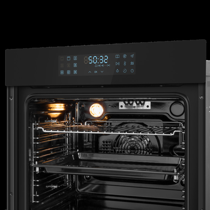 Объем духовки: 76 л; Установка: встраиваемая; Мощность подключения: 3.35 кВт; Максимальная температура: 310 °С; Переключатели: сенсорные; Утапливаемые переключатели: нет; Очистка духовки: гидролитическая; Режимы нагрева: нижний и верхний нагрев (традиционный), нижний нагрев + конвекция, традиционный нагрев с конвекцией (сопровождение конвекции), статический гриль, «принудительная конвекция», «3d-конвекция», гриль с конвекцией, размораживание, аэрофритюр, воздушная сушка, приготовление пиццы;