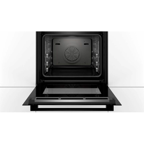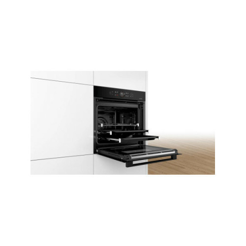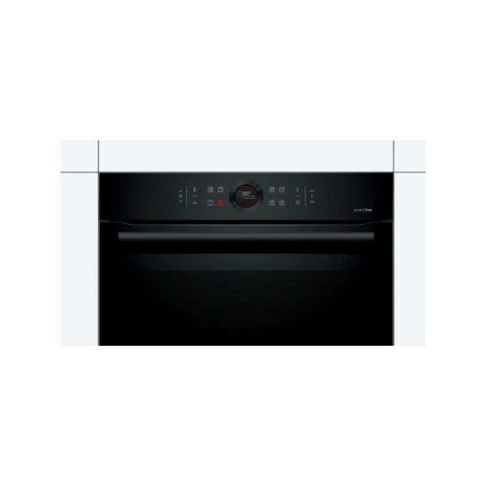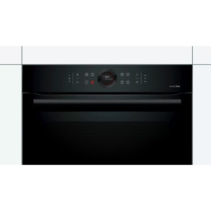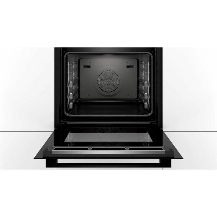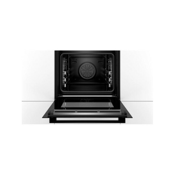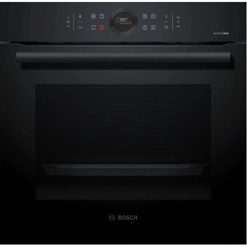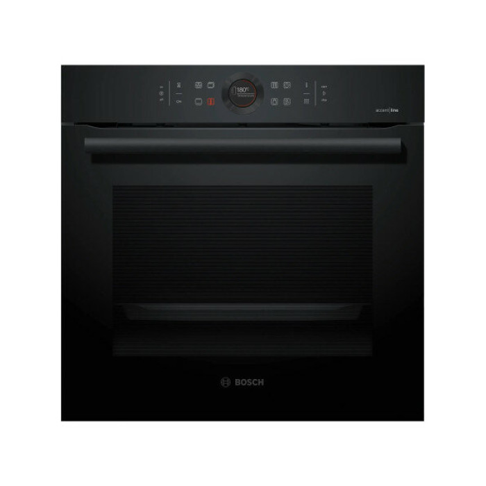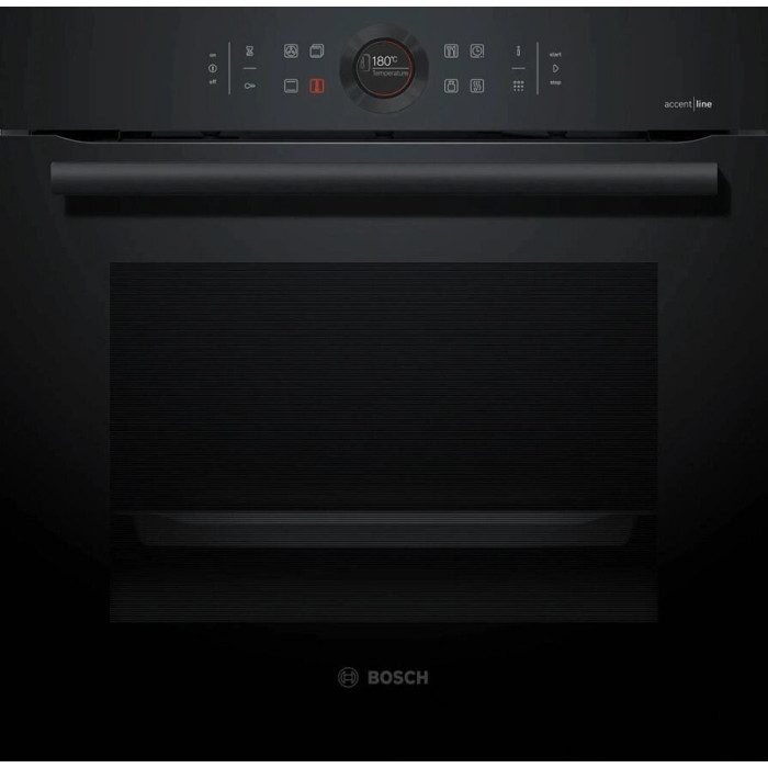 Духовой шкаф Bosch HBG8755C0 черный, электрическая духовка, объём 71л, покрытие: эмаль легкой очистки, электрический гриль, программ духовки: 13, независимое управление, переключатели поворотные/сенсорные