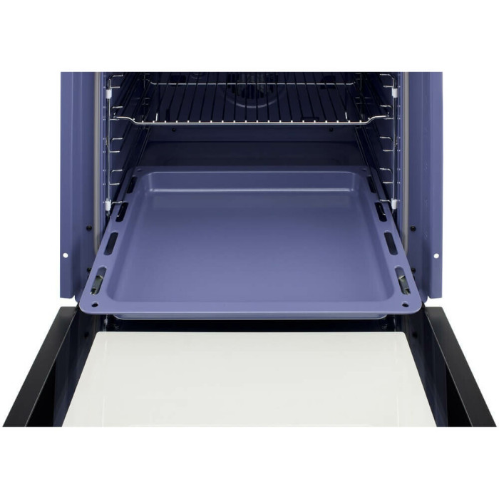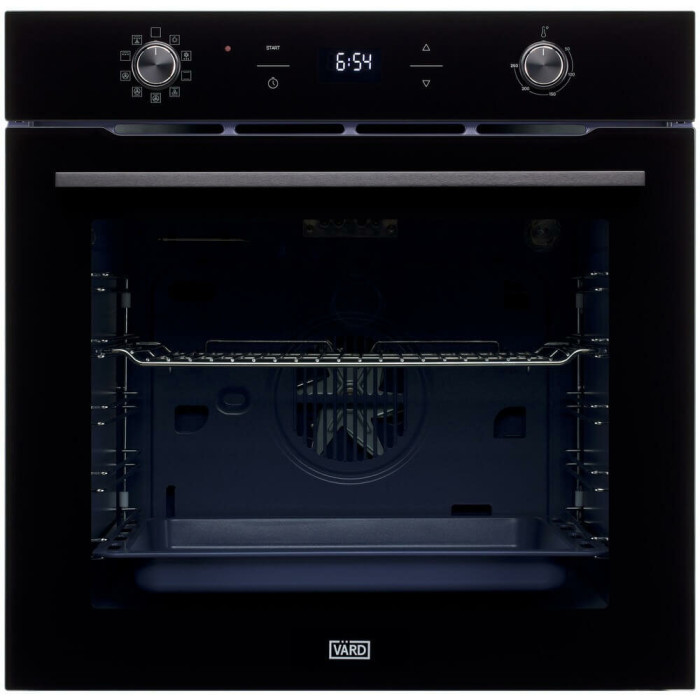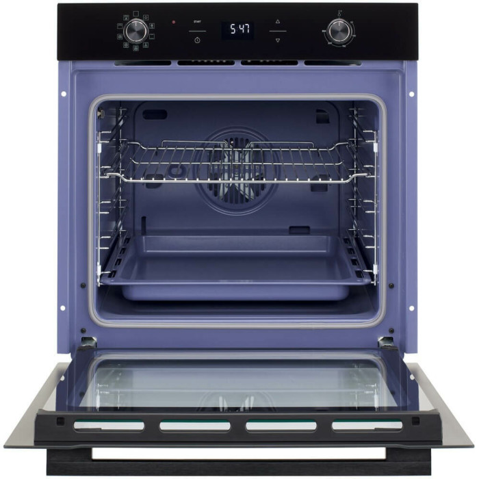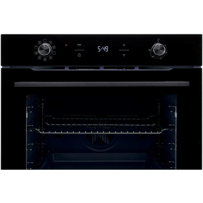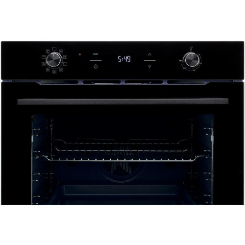 Электрический духовой шкаф черного цвета с утапливаемыми переключателями и внутренним объемом 75 литров станет гармоничным дополнением к дизайну вашей кухни.
