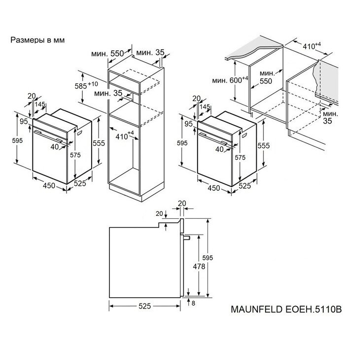Электрический духовой шкаф Maunfeld EOEH5110B Особенности: Категория: Духовые шкафы Тип духового шкафа: Электрический Тип управления: Сенсорное Тип очистки: Гидролизная Тип гриля: Электрический Блокировка панели управления Таймер Режим конвекции Гриль Освещение духовки Автоматическое выключение Дисплей Глубокий поддон Внутреннее покрытие: Эмаль легкой очистки Материал фасада: Стекло Материал корпуса: Металл Режимы и функции работы: Количество режимов работы: 8 Традиционный нагрев Конвекция с нижним нагревом Нижний нагрев Разморозка Верхний и нижний нагрев с конвекцией Гриль Гриль с конвекцией Расстойка теста Сохранение тепла Внутреннее освещение Характеристики: Ширина: 45 см Высота: 60 см Объём: 49 л Максимальная температура: 250ºC Диапазон температуры: 50-250ºC Максимальная мощность: 2350 Вт Класс энергетической эффективности: A Длина шнура: 150 см Габариты прибора (ВхШхГ): 595х450х585 мм Вес нетто: 22.64 кг Вес брутто: 27.46 кг Цвет: Черный Комплектация: Глубокий противень Хромированная решетка 5-ти уровневые хромированные направляющие
