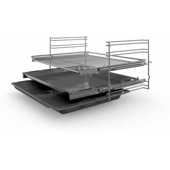 Электрический духовой шкаф Bosch HBJ558YB0Q с независимой установкой. Благодаря объему 66 литров и функции 3D-горячий воздух позволяет готовить разные блюда на нескольких уровнях одновременно.