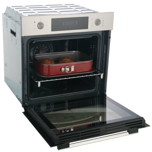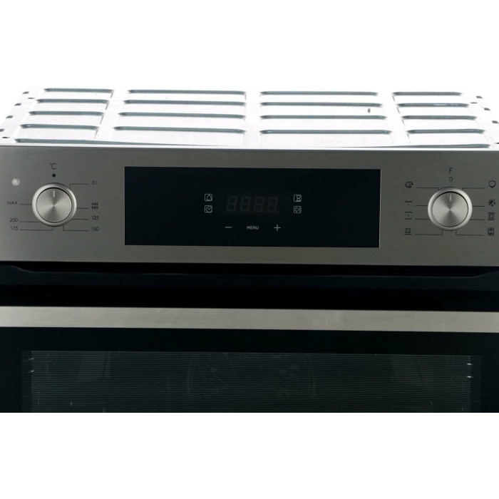 Встраиваемый; Режимов работы - 8 шт.; Комбинированное управление; Индикация - режима работы/звуковая; Доводчик дверцы духовки; Защитное покрытие от отпечатков пальцев; Цифровой дисплей; Кабель без вилки; Лампа накаливания; Аварийное отключение духовки