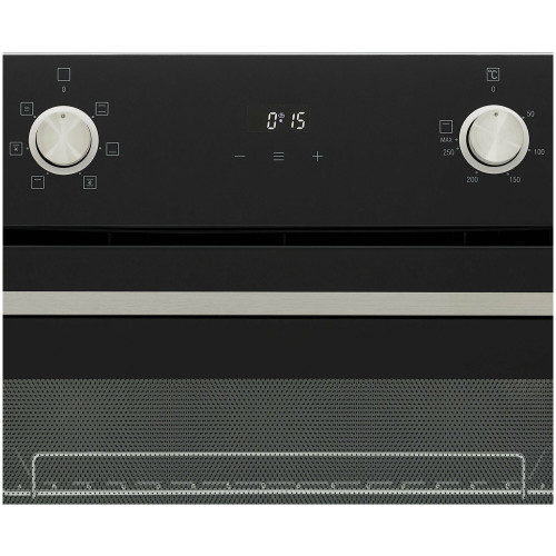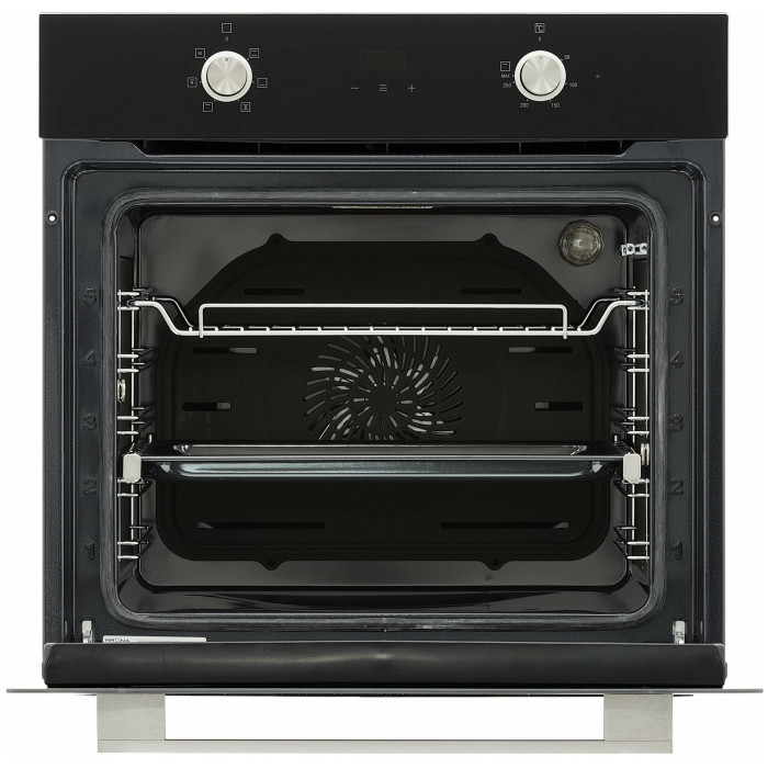 ОбщиеСтиль: ModernoЛинейка: OptimaПреимущества моделиУтапливаемые переключатели и сенсорный дисплейОстекление дверцы с усиленной теплоизоляцией LOW-EРазмерыВес нетто, кг: 29,16Лицевая панель (В*Ш*Г), мм: 595*595*20Встраиваемая часть (В*Ш*Г), мм: 573*556*547Ниша для встраивания (В*Ш*Г), мм: 600*560*550 minДизайнМатериал: закаленное стеклоМатериал переключателей: металлМатериал ручки дверцы: металлУправление: 2 утапливаемых переключателя + сенсорДисплей: даЧасы: электронныеТехнические характеристикиПолезный объем, л: 66Нагревательные элементы: верхний, нижнийОсвещение: 1 галоген/вольфрам, 15 ВтГриль: электрическийМощность гриля, кВт: 1,4Диапазон регулировки температуры нагрева: 50-285°СКласс энергопотребления: АНаличие вилки: без вилкиДлина шнура, мм: 1250Режимы приготовленияВерхний и нижний нагревВерхний и нижний нагрев с конвекциейВерхний нагрев с конвекциейНижний нагревГрильГриль с конвекциейКонвекцияУдобство эксплуатацииТаймер: электронный с функцией напоминания/включения/отключения, 1-10 чНаправляющие: металлические хромированные, 5 уровнейБезопасностьАвтоматическое отключение: даЗащита от перегрева: даОчисткаСъемная разборная дверь: даЭмаль легкой очистки Easy Clean: даКомплектацияСтандартный противень: даРешетка для гриля: да
