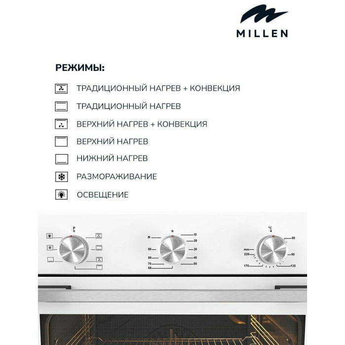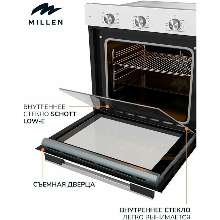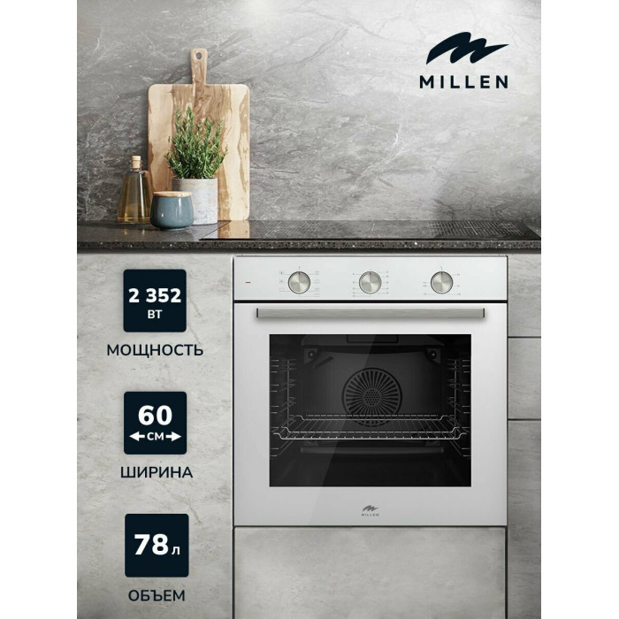 Белый духовой шкаф MEO 6001 WH станет отличным функциональным дополнением любого дизайнерского решения по оформлению кухни. Устройство обладает всеми необходимыми программами, которые позволяют приготовить блюдо любой сложности без особых усилий. При производстве использовались экологически безопасные и надежные материалы премиального класса, потому что компания MILLEN заботится об окружающей среде и безопасности своих клиентов.