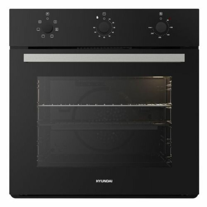 Духовой шкаф Hyundai HEO 6230 BG черное стекло, электрическая духовка, объём 68л, программ духовки: 3, независимое управление, переключатели поворотные