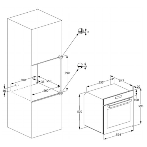 размер ниши для встраивания 59х56х55см; тип часов: электронные
