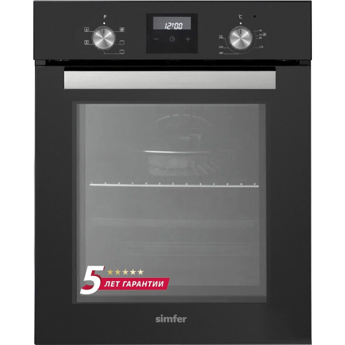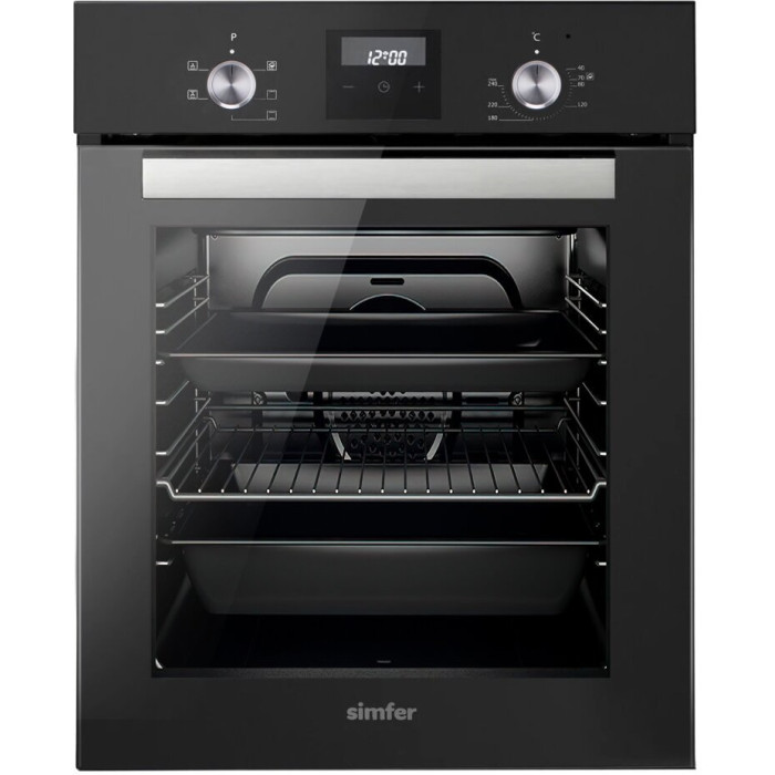 Встраиваемый электрический духовой шкаф SIMFER B4EB56055 Black – это многофункциональная техника, которая позволяет готовить самые разные блюда. Продуманная конструкция Духовка оснащена 5 режимами работы, включая гриль и конвекцию. Благодаря этому можно запекать мясо, рыбу, овощи, а также выпечку. Есть таймер со звуковым сигналом, который оповещает об окончании готовки. Основные параметры устройства: объем рабочей камеры составляет 49 л, что дает возможность одновременно приготовить несколько блюд; внутренняя поверхность покрыта специальной эмалью, которая легко очищается от загрязнений; дверца имеет двойное остекление, поэтому корпус не нагревается во время работы. Кроме того, предусмотрены подсветка и телескопические направляющие. Последние выдвигаются, что облегчает процесс извлечения противня. Корпус выполнен из нержавеющей стали, устойчивой к механическим повреждениям и коррозии.