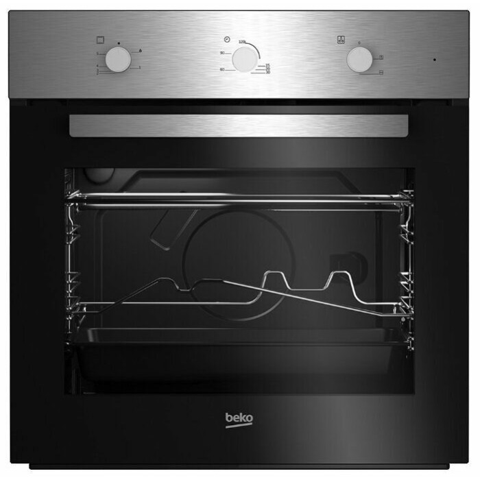 Встраиваемая газовая духовка Beko BIGT21100X с электроподжигом и газ-контролем, который отслеживает наличие пламени в духовом шкафу и прекращает подачу газа, если оно случайно погаснет из-за разлитой жидкости. В комплект с духовым шкафом идут противень, решетка и вертел для гриля.