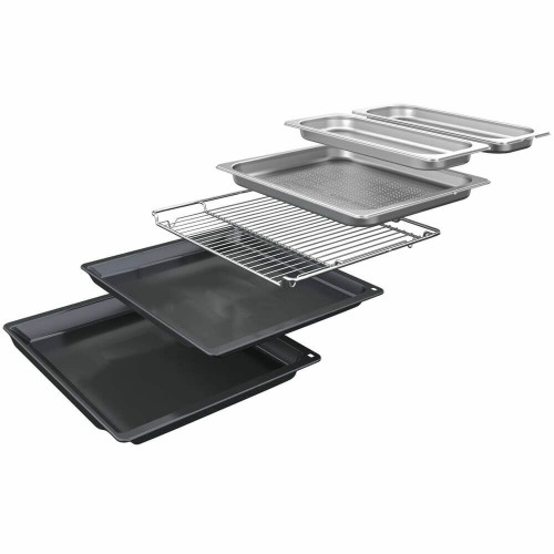 Металлическая решетка, универсальный противень, плоский противень, паросборник с отверстиями (размер M), паросборник без отверстий (размер M), паросборник с отверстиями (размер XL), сетевой кабель 1.2 м, инструкция