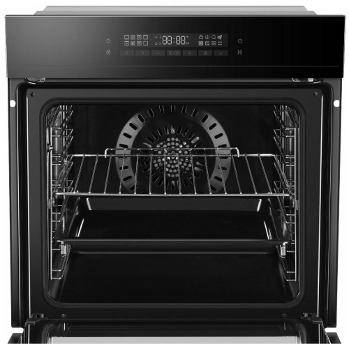 Духовой шкаф HOQ-F5AAGB серии iCook5 станет не только красивым дополнением к интерьеру, но и многофункциональным прибором для приготовления самых разных блюд. Визитной карточкой этой модели является функция AirFry, которая аналогично аэрогрилю способствует максимальной скорости теплопередачи, и ваши блюда будут иметь румяную хрустящую корочку, а картошка фри получится идеальной даже с минимальным количеством масла. Кроме того, благодаря особой конструкции, данная модель способна с точностью до одного градуса поддерживать температуру нагрева, что позволяет готовить даже на низких температурах в диапазоне от 30 градусов. Приготовление под вакуумом активно используется профессионалами высокой кухни, а теперь эта функция стала доступна для использования дома: такой режим помогает максимально сохранить полезные вещества и при этом раскрыть вкус продукта. Кроме того, духовой шкаф оборудован выдвижными телескопическими направляющими на двух уровнях, функцией аква очистки и дополнительной защитой дверцы от перегрева, что делает использование и невероятно комфортным и безопасным. Особенности: Режим AirFry В этом режиме скорость теплопередачи выше, чем в традиционных режимах нагрева и режимах запекания с циркуляцией горячего воздуха. Благодаря этой уникальной технологии не требуется так много масла для приготовления, что снижает калорийность блюд на 70-80%. Активное тепло Специальная конструкция воздуховодов в верхней и задней части духовки в сочетании с использованием PID алгоритма позволяет поддерживать очень равномерную температуру с колебанием не более, чем в 1°C, что позволяет получить идеальный результат приготовления. Приготовление под вакуумом Приготовление под вакуумом сделает блюда мягкими и сочными с минимальной потерей питательных веществ. Готовка профессионального уровня будет доступна у вас дома. Последний использованный режим В одно нажатие можно установить последний использованный режим (в памяти сохраняется до трех режимов). Для часто используемых рецептов это просто и удобно. Пошаговое приготовление Можно установить до 3 этапов нагрева в рамках одной программы приготовления. Теперь не нужно вручную менять установки в сложных пошаговых рецептах. Авторецепты Предустановленные популярные рецепты, например, режим приготовления пиццы, помогут достичь самых лучших результатов приготовления любимых блюд. Общие данные: Габариты: 59.5x59.7x56.5 см Объем: 72 л Гриль: есть Конвекция: есть Подсветка духовки: галоген Количество режимов работы: 13 Самоочистка: паровая Режимы работы: Низкотемпературное приготовление Нижний + верхний нагрев Вентилятор + нижний + верхний нагрев Гриль Расстойка теста Принудительная вентиляция Классическая выпечка Обжаривание Сушка Размораживание Пицца Аква-очистка Гриль с конвекцией (верхний нагрев + вентилятор) Air Fry Управление и функции: Полностью сенсорное управление LED дисплей Цвет символов дисплея: Белый Количество автоматических программ: 10 Диапазон температур 30°C — 250°C Быстрый нагрев Безопасность: Замок от детей Прохладная дверца духовки Количество стекол в двери: 3 Принадлежности: Противень (445 x 373 x 20 мм) Противень универсальный глубокий (445 x 373 x 38 мм) Решетка Дополнительная информация: Телескопические направляющие на 2х уровнях Цвет ручки: Алюминиевый сплав Внутреннее покрытие: Активн