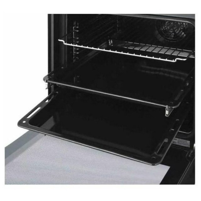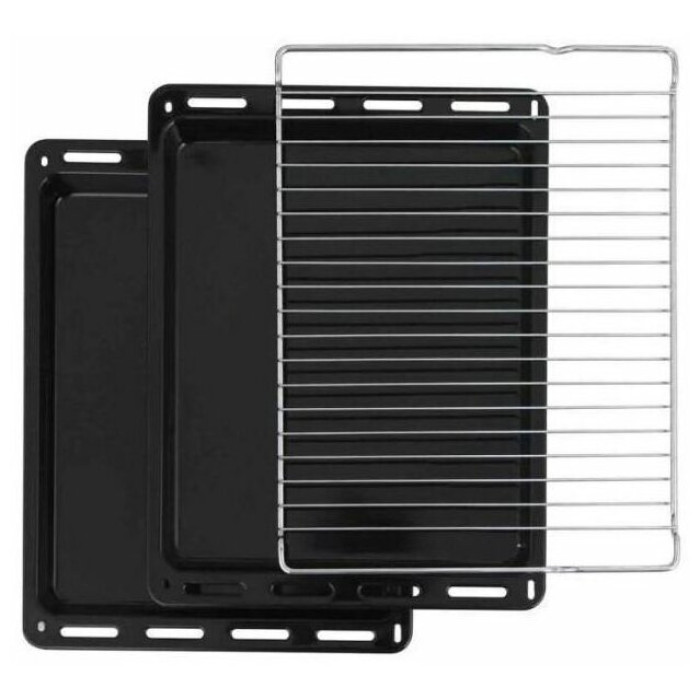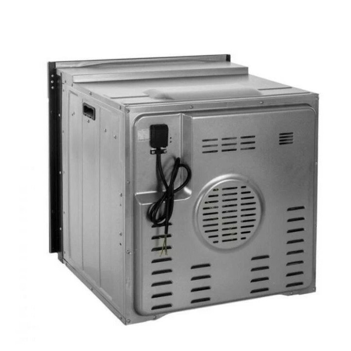 Общие данные: Габариты: 59.5x59.5x56.7 см Объем полезный: 76 л Гриль: есть Конвекция: есть Подсветка духовки: есть Количество режимов работы: 6 Самоочистка: эмаль легкой очистки Режимы работы: Нижний + верхний нагрев Комбинированный гриль (гриль + верхний нагрев) Вентилятор + нижний + верхний нагрев Вентилятор + нижний нагрев Гриль Нижний нагрев Управление и функции: Переключатели: механическое Поворотные переключатели Диапазон температур: 50 — 250 Термостат Безопасность: Кол-во стекол на дверце: 2 Оснащение: Эмалированный противень, глубиной 3 см Решетка Дополнительная информация: Мощность подключения (кВт): 2 Напряжение/Частота: 220-240 В / 50 Гц Сетевой кабель в комплекте (без вилки) Длина сетевого кабеля: 1 м Количество уровней приготовления: 6 Легкое извлечение стекла Съемная дверца духовки