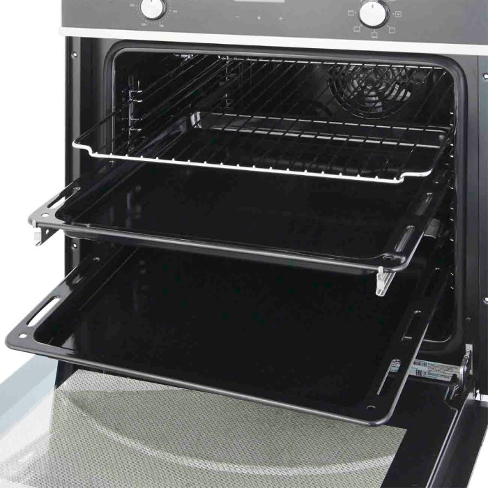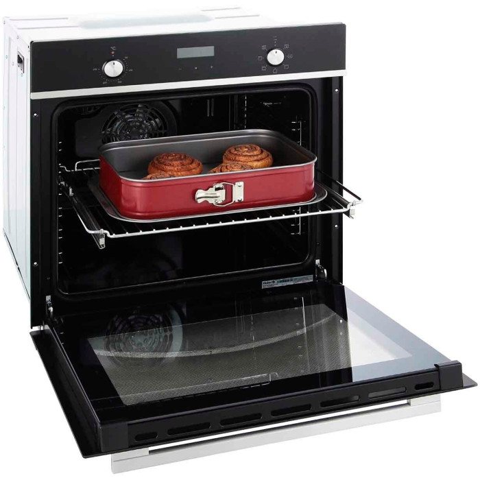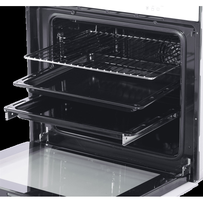 Общие данные: Габариты: 59.5x59.5x56.7 см Объем полезный: 76 л Гриль: есть Конвекция: есть Подсветка духовки: есть Количество режимов работы: 7 Самоочистка: эмаль Режимы работы: Освещение Конвекция Верхний нагрев Нижний нагрев Верхний и нижний нагрев Гриль Верхний и нижний нагрев + конвекция Управление и функции: Переключатели: Утапливаемые Подсветка переключателей Подсветка символов дисплея Безопасность: Кол-во стекол на дверце: 3 Оснащение: Мелкий эмалированный противень - 2 Решетка Направляющие Телескопические на 1м уровне Дополнительная информация: Класс энергопотребления: A Уровни приготовления: 6 Мощность подключения (кВт): 2,25