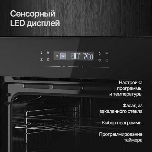 Длина сетевого шнура 140 см, Направляющие для противней хромированные, съемные, Решетка для гриля, Стандартный противень, Глубокий противень, Телескопические направляющие 1 уровневые, Доводчик двери