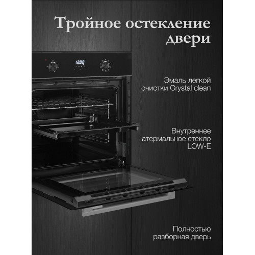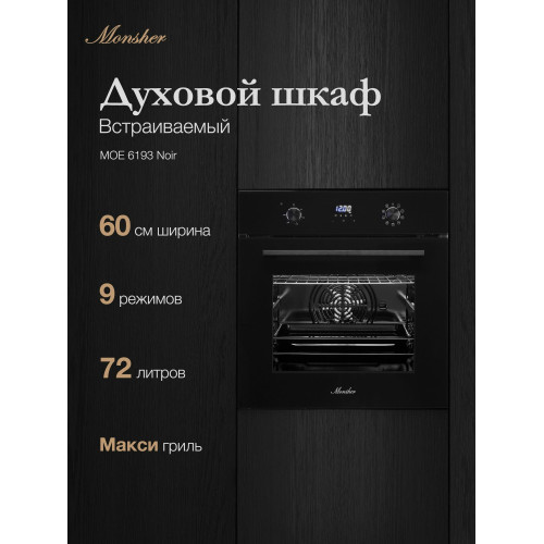 Электрический духовой шкаф Monsher "Noir" MOE 6193, гидролизная очистка, 72л