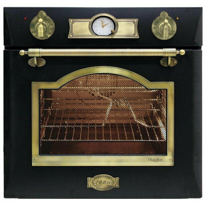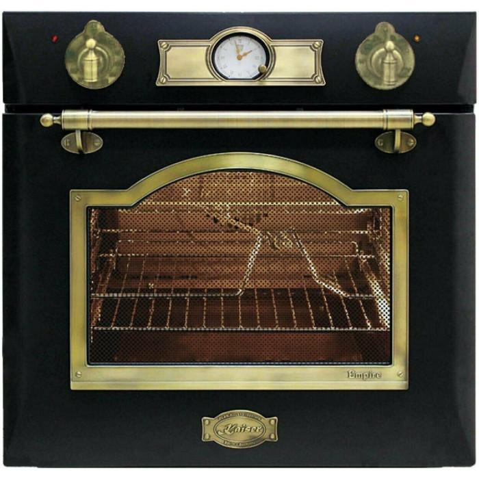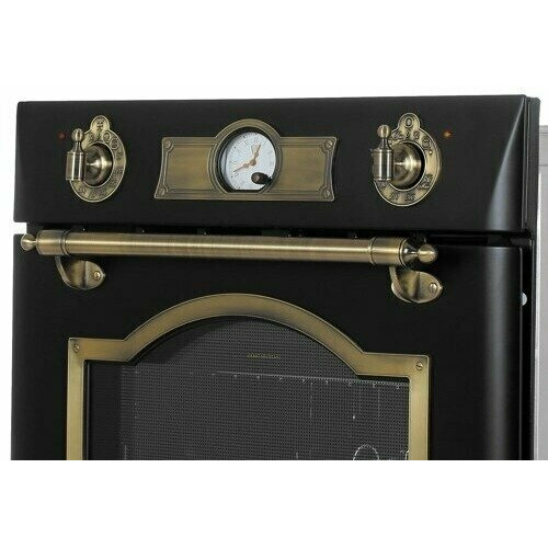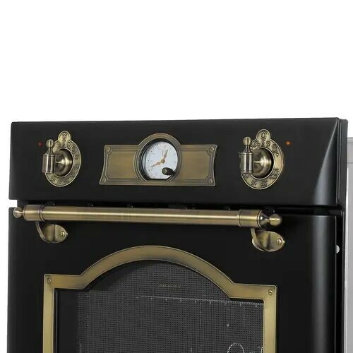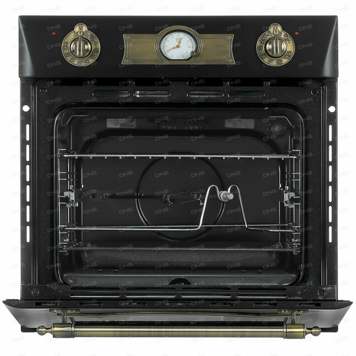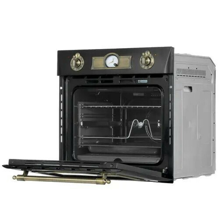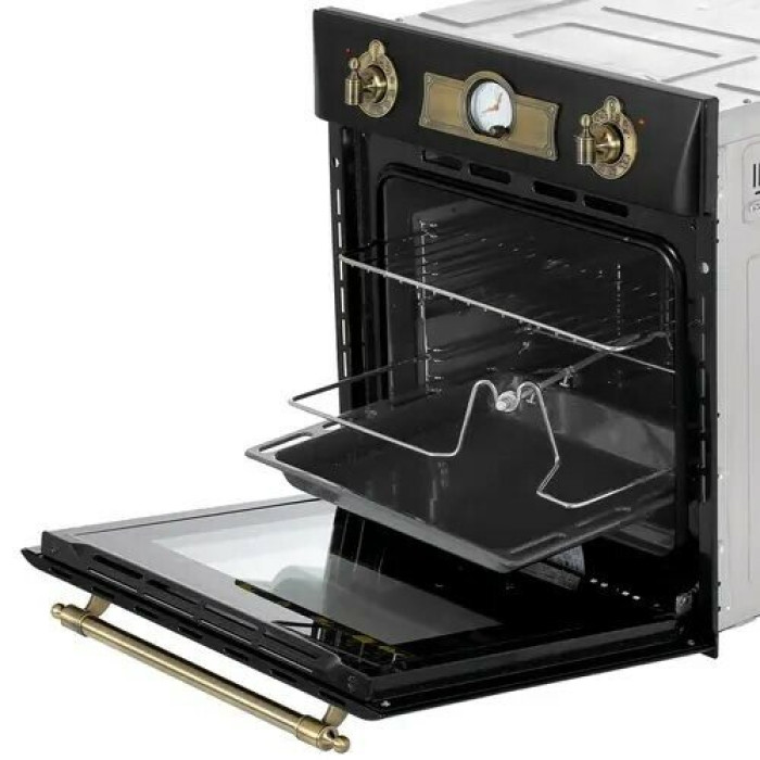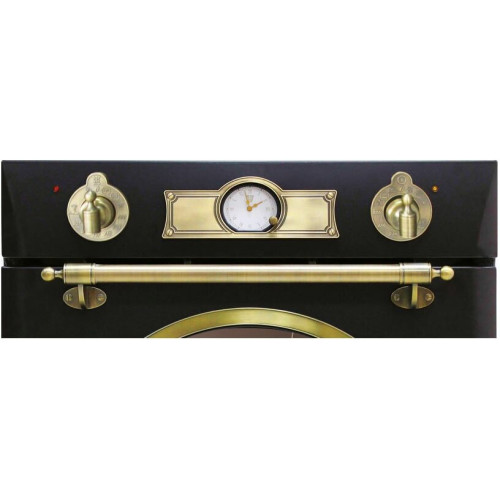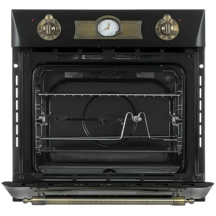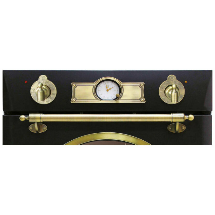 размораживание, таймер, Вентилятор охлаждения, Встроенные часы, Дизайн Ретро, Полностью стеклянная внутренняя дверца, Рецепты на двери, Хромированные направляющие, Электромеханический вертел