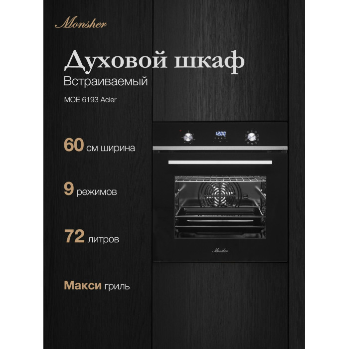 Духовой шкаф Monsher Acier MOE 6193, электрический, объем 72л