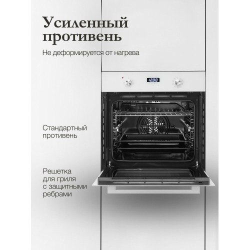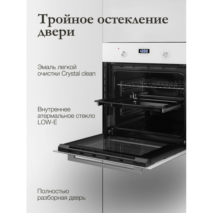 Длина сетевого шнура 140 см, Эмаль легкой очистки, Съемная дверца духового шкафа, Съемное внутреннее стекло, Стандартный противень, Глубокий противень, Направляющие для противней хромированные съемные, Решетка для гриля