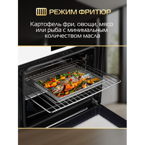 Инструкция с гарантийным талоном, решетка хромированная, стандартный противень, противень для приготовления на пару, сетчатый противень для приготовления фритюра, крепежные винты (2 шт)