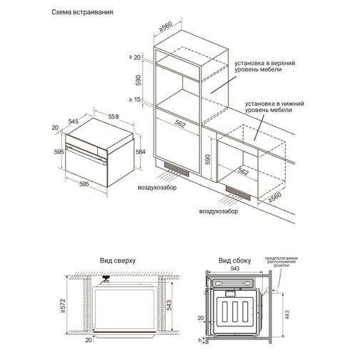 большой гриль, верхний нагрев + конвекция, верхний нагрев + нижний нагрев, верхний нагрев + нижний нагрев + конвекция, гриль + конвекция, конвекция, нижний нагрев + конвекция