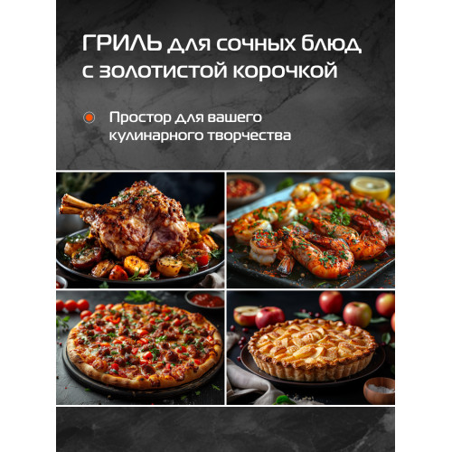 большой гриль, верхний нагрев + конвекция, верхний нагрев + нижний нагрев + конвекция