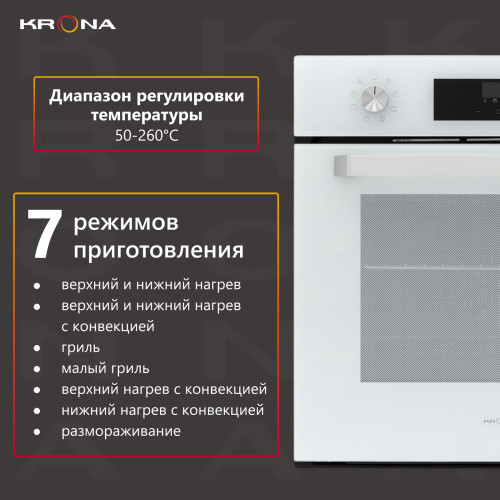 большой гриль, верхний нагрев + конвекция, верхний нагрев + нижний нагрев, малый гриль, нижний нагрев + конвекция