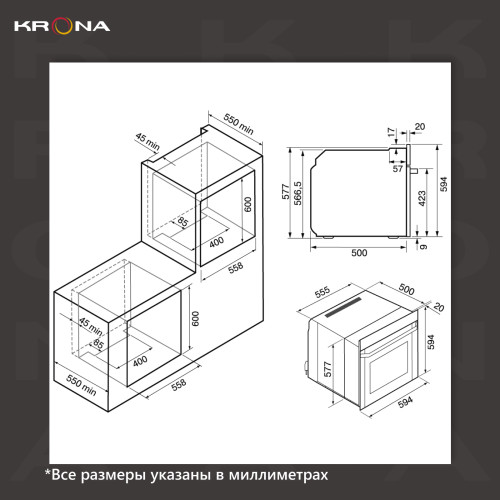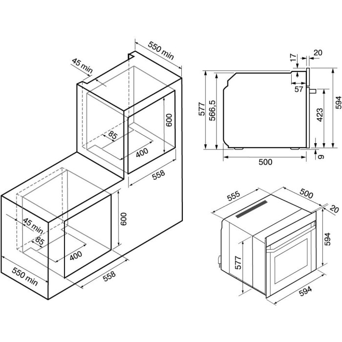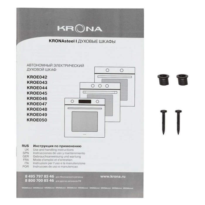 Духовой шкаф, установочный комплект, инструкция, стандартный противень, решетка для гриля