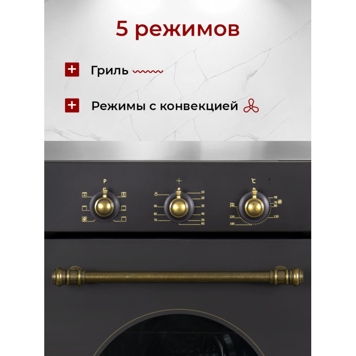 верхний нагрев + нижний нагрев, гриль, гриль + конвекция, нижний нагрев, Верхний + нижний нагрев + конвекция