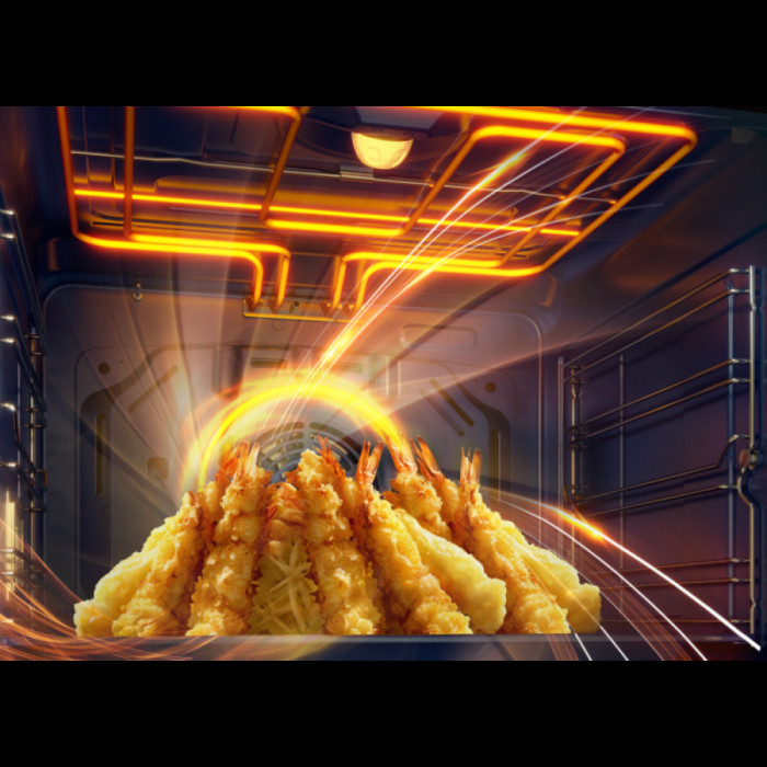Духовой шкаф; корзина для Air‑Fry; эмалированные противни; многофункциональная решётка для жарки; термощуп; инструкция.