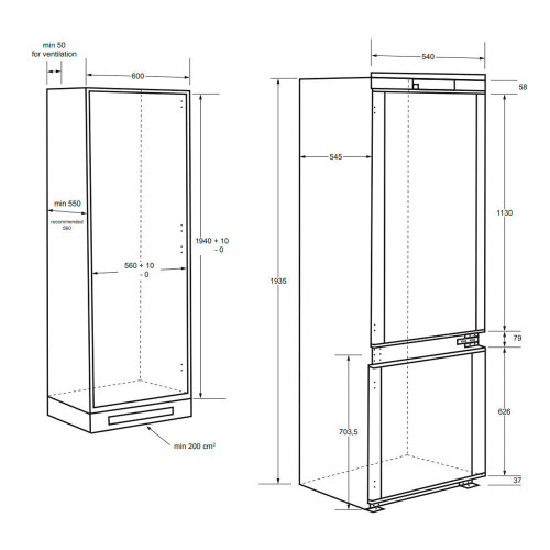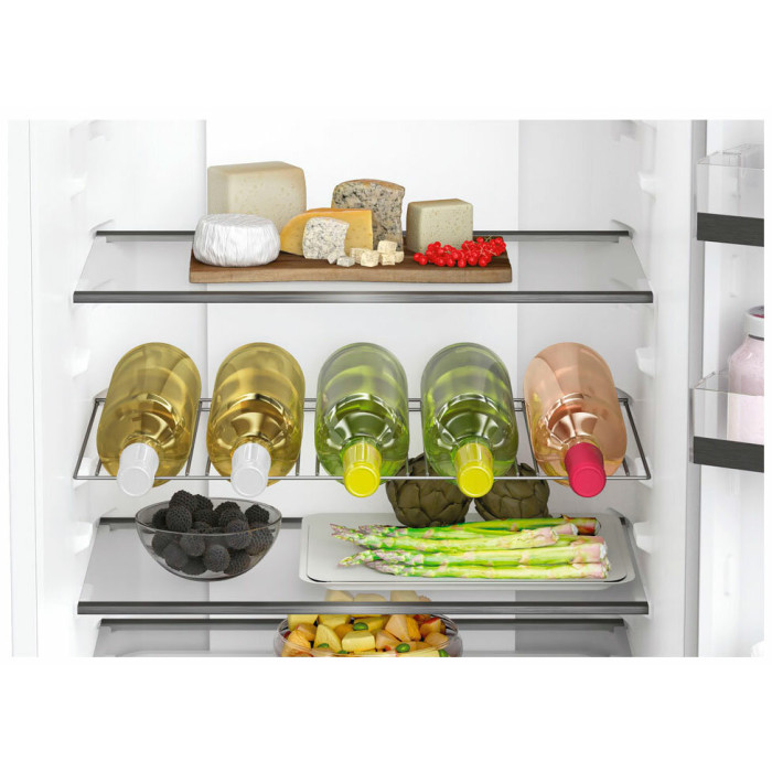 Вентилятор для распределения температуры. Подставка для яиц, полка для бутылок. Перенавешиваемые двери. Освещение холодильной камеры. Тип освещения - LED. Хранение при отключении питания -9