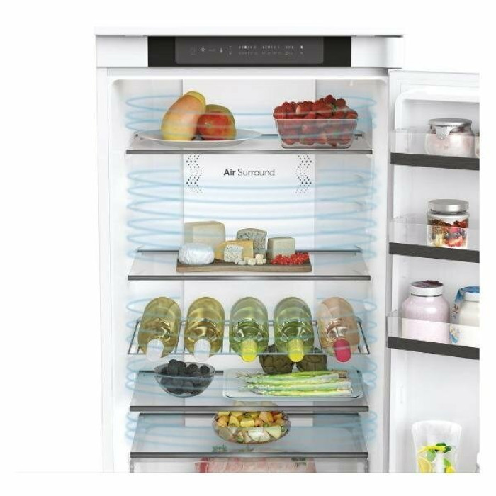 Общие данные: Размеры: высота: 193.5 см ширина: 54 см глубина: 54.5 см Общий объем/ Полезный объем: Холодильника (л): -/281 Холодильной камеры (л): -/219 Морозильной камеры (л): -/62 Тип управления: электронный Класс энергопотребления: A++ Климатический класс: N-ST (от +16°С до +38°С) Количество компрессоров: 1 Годовое потребление энергии: 228 кВтч Цвет: белый Холодильное отделение: 4 полки из закаленного стекла 6 полок на двери Система No Frost (Frost Free, Ноу Фрост) Светодиодная подсветка Зона сохранения свежести Функция Суперохлаждения Ящики для овощей с регулировкой влажности: 2 Полка для бутылок Лоток для яиц Морозильное отделение: Система No Frost (Frost Free, Ноу Фрост) Время сохранения холода при отключении электроэнергии: 9 ч Мощность замораживания: 3,5 кг/сутки Функция Суперзамораживания 3 отделения Лоток для льда Дополнительная информация: Инверторный компрессор Сенсорный дисплей Уровень шума дБ (А): 33 Тип хладагента: R600a Функция Отпуск Сигнал открытой двери Вес: 66 кг