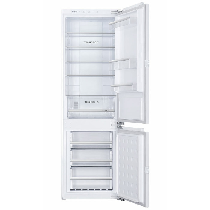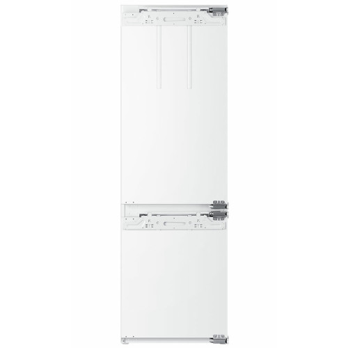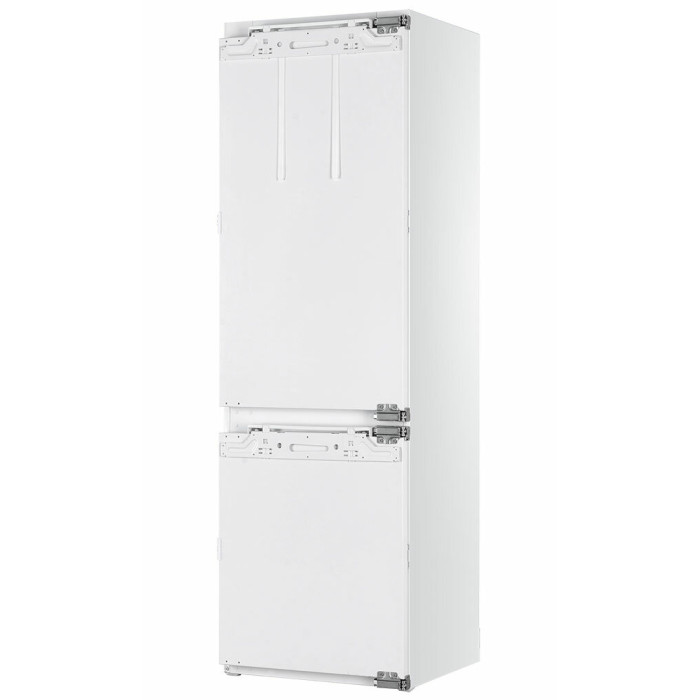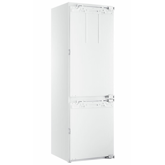 Встраиваемый двухкамерный холодильник с нижним расположением морозильной камеры Общие данные: Размеры: высота: 177.2 см ширина: 55.5 см глубина: 54 см Общий объем/ Полезный объем: Холодильника: -/228 л Холодильной камеры: -/169 л Морозильной камеры: -/59 л Электронное управление Класс энергопотребления: A Климатический класс: SN-T (от +10°С до +43°С) Количество компрессоров: 1 Годовое потребление энергии: 375 кВтч/год Цвет: белый Холодильное отделение: 5 полок 3 полки на дверце Система Nо Frost (Frost Free, Ноу Фрост) Освещение LED Суперохлаждения Температурный диапазон: 0-10°C Ящики для овощей с регулировкой влажности Ящики для овощей: 1 шт. Кол-во лотков для яиц: 3 шт. Морозильное отделение: Система Nо Frost (Frost Free, Ноу Фрост) Мощность замораживания: 10 кг/сутки Время поддержания температуры при отключении электроэнергии: 12 ч Температурный диапазон: -16...-24°C Суперзамораживание 3 ящика Дополнительная информация: Стандартный компрессор Сенсорный дисплей Функция Отпуск Уровень шума дБ (А): 42 Тип хладагента: R600a Напряжение/Частота: 220-240 V / 50Hz Размер ниши для встраивания (ВхШхГ): 177.3-178.8 х 56-57 х 55 см Вес: 69 кг