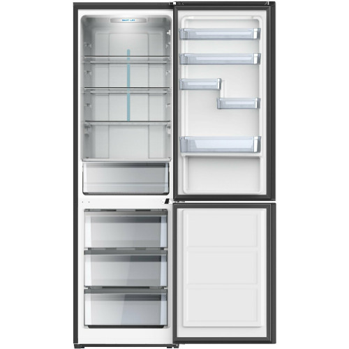 WILLMARK RFN-454DNFD современный двухкамерный холодильник со всеми необходимыми функциями. Модель совмещает в себе стильный дизайн, отличные технические характеристики и высокие эксплуатационные качества. Верхнее расположение холодильной камеры существенно сэкономит ваше время. Данная модель изготовлена по системе размораживания Total NoFrost и не нуждается в ручной разморозке. Двери холодильника перенавешиваемые. В комплекте: форма для заморозки льда на 10 ячеек и три выдвижных ящика для заморозки продуктов, 4 полки регулируютcя по высоте. Полка закрывающая ящик для овощей снабжена регулируемым вентиляционным отверстием. Есть электронный регулятор температуры охлаждения и светодиодная лампа низкого потребления энергии. Наличие дисплея, вынесенного на дверцу, позволит вам следить за состоянием прибора и с легкостью настраивать его! На внутренней части двери холодильной камеры расположены дверные полки регулируемые по высоте.