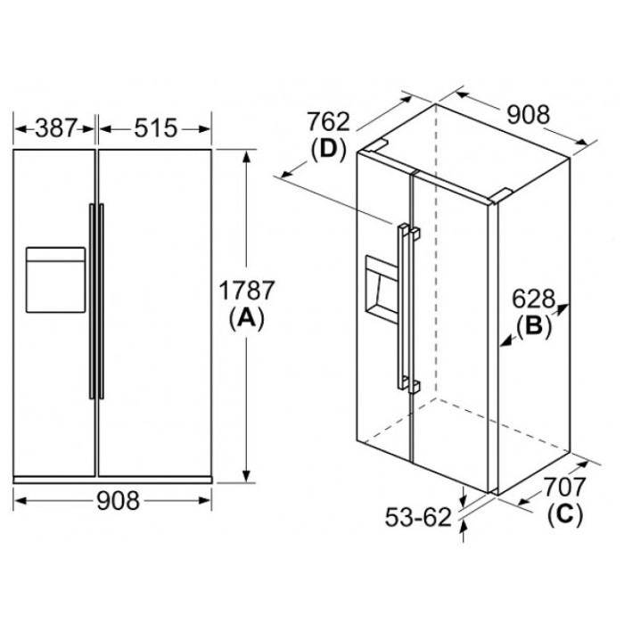 высота: 186 см, морозильная камера: сбоку, размораживание морозильной камеры: No Frost, размораживание холодильной камеры: No Frost, количество камер: 2, класс энергопотребления: A++, ширина: 99 см, глубина: 76 см, общий объем: 610 л