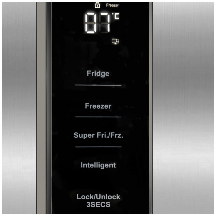 высота: 185 см, морозильная камера: сбоку, размораживание морозильной камеры: No Frost, размораживание холодильной камеры: No Frost, количество камер: 2, класс энергопотребления: A++, ширина: 91 см, глубина: 64 см, общий объем: 590 л, объем холодильной камеры: 320 л, объем морозильной камеры: 200 л, тип компрессора: инверторный, количество компрессоров: 1, особенности конструкции: дисплей, режимы: суперзаморозка, суперохлаждение, уровень шума: 39 дБ