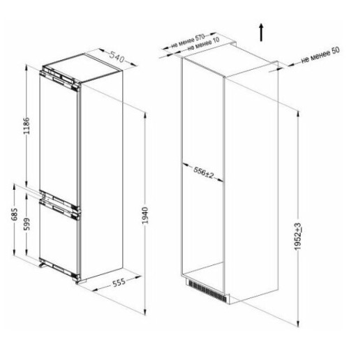 Расположение морозильной камеры