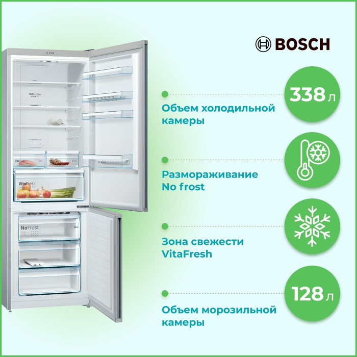 Тип: холодильник; Морозильная камера: снизу; Размораживание холодильной камеры: NoFrost; Размораживание морозильной камеры: NoFrost; Тип компрессора: стандартный; Мощность замораживания: 15 кг/сут; Автономное сохранение холода: 20 ч; Дисплей: да;