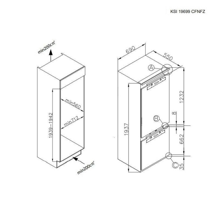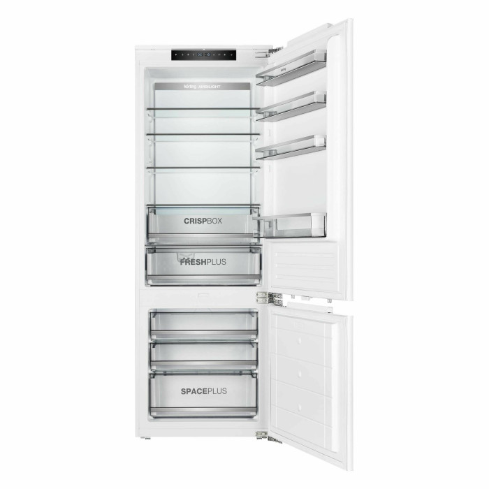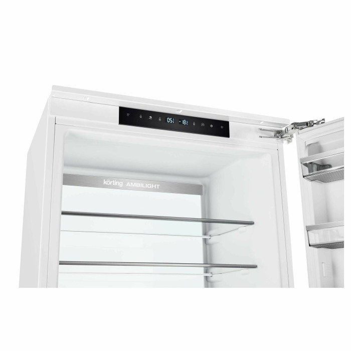 Тип: встраиваемый холодильник; Морозильная камера: снизу; Размораживание холодильной камеры: No Frost; Размораживание морозильной камеры: No Frost; Тип компрессора: стандартный; Тип управления: электронное; Мощность замораживания: 3.8 кг/сут; Дисплей: цифровой дисплей;