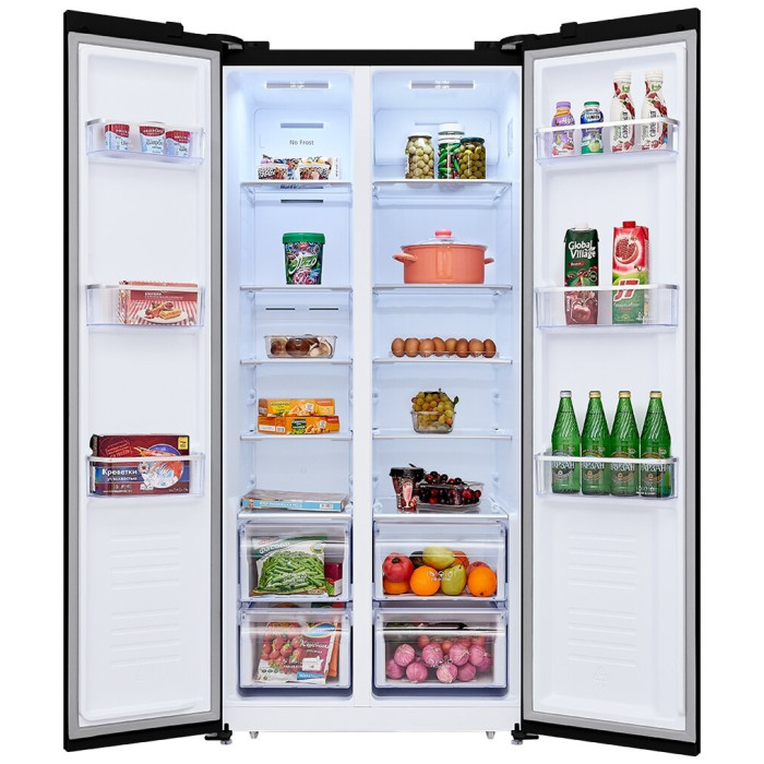 Холодильник Side-by-Side Hiberg RFS-480DX NFB – современный прибор с продуманным внутренним оснащением, удобным электронным управлением и системой автоматического размораживания No Frost, которая будет экономить ваше время и силы.