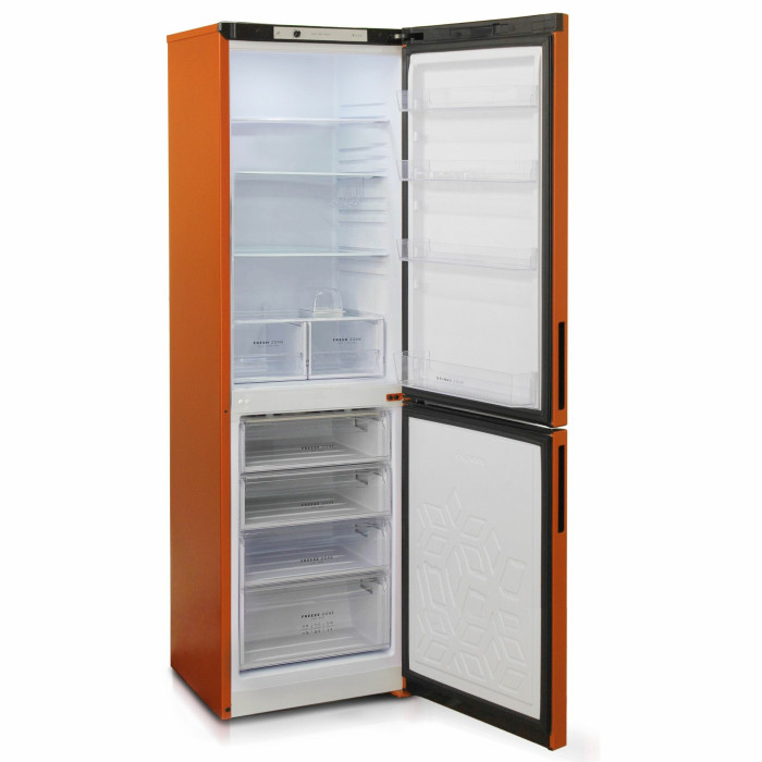 Холодильник БИРЮСА T6049 оранжевый, 207х60х62 см, 380 л, полок: 4, 4 ящика, двухдверный, механическое, компрессоров: 1, R600a, A, N