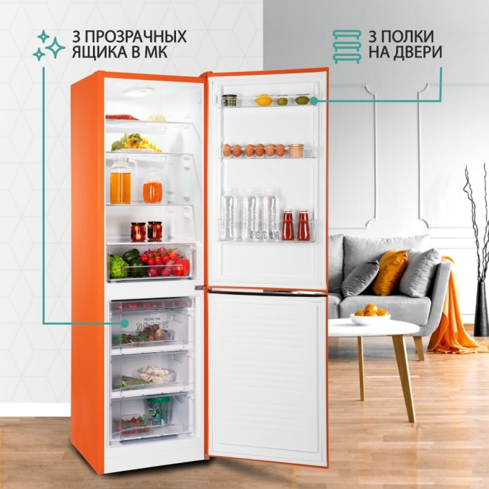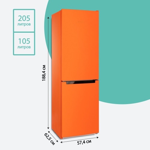 Двухкамерный отдельностоящий холодильник NORDFROST NRB 162NF с нижним расположением морозильной камеры имеет общий объем 310 л. Холодильник высотой 188,4 см.