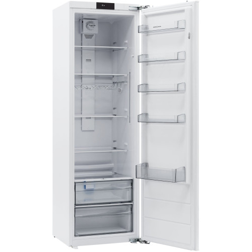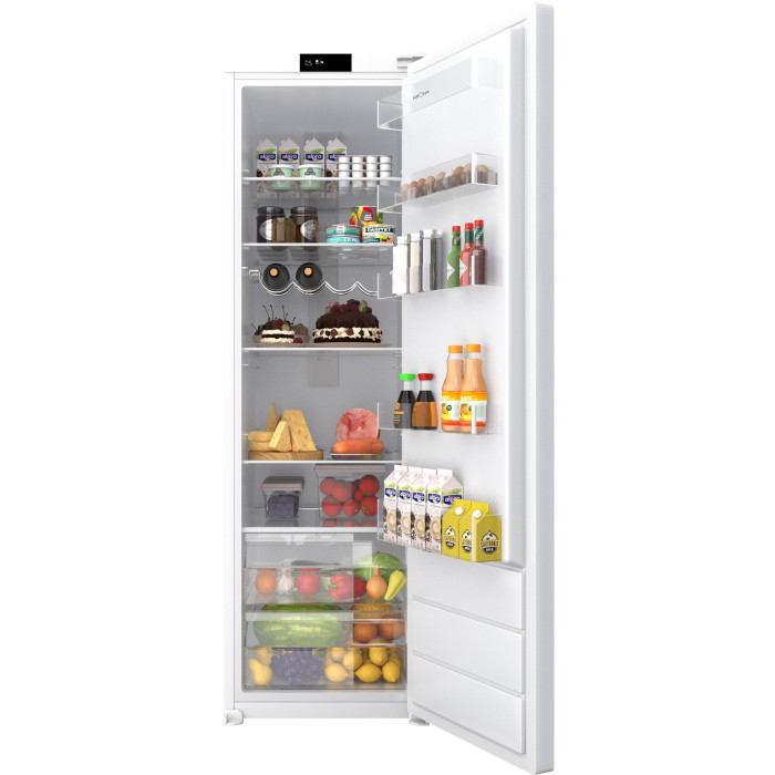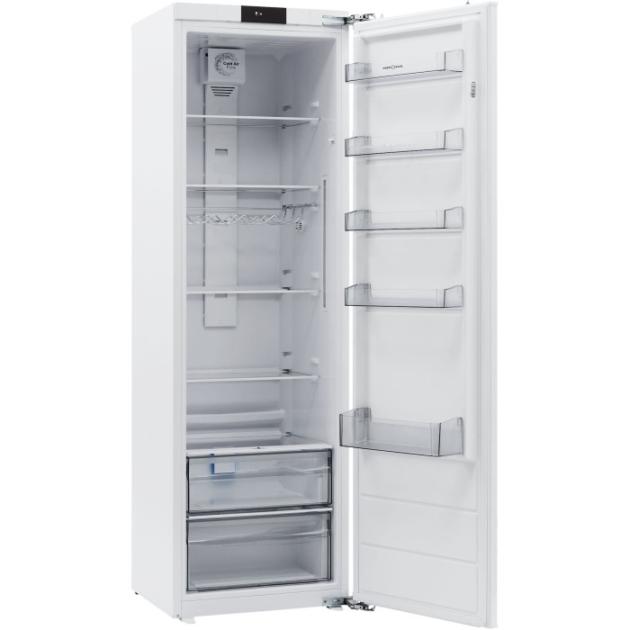 Встраиваемый высокий однокамерный холодильник HANSEL шириной 60 см можно установить на кухне как отдельный элемент или в паре с высоким с морозильником. Вместительная холодильная камера с полезным объемом 300 л, оснащена 5 стеклянными полками, 2 ящиками, 5 дверными полками и держателем для бутылок, благодаря которым вы сможете комфортно хранить большое количество продуктов. Холодильник предусматривает статическую систему охлаждения и капельную разморозку, благодаря которым продукты не пересушиваются, а размораживание холодильника происходит автоматически. Модель HANSEL предусматривает удобную боковую LED-подсветку, которая освещает все уровни хранения, а также современное интуитивно понятное сенсорное управление с дисплеем. Для быстрого охлаждения большого количества продуктов вы можете воспользоваться функцией Super Cool, а для качественного хранения фруктов и овощей предусмотрена зона свежести CRISPER ZONE с контроллером влажности Humidity Control и системой устранения этиленового газа и неприятных запахов ULTRA FRESH PRESERVER. Холодильник HANSEL отличается высоким классом энергоэффективности А+, благодаря которому годовое потребление электроэнергии составляет всего 144 кВт.