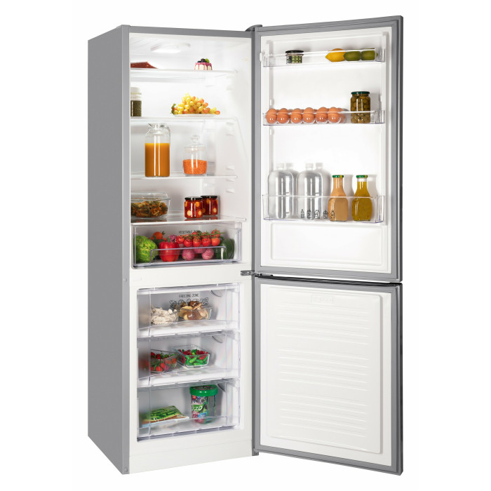 Двухкамерный отдельностоящий холодильник NORDFROST NRB 132 S с нижним расположением морозильной камеры имеет общий объем 305 л.