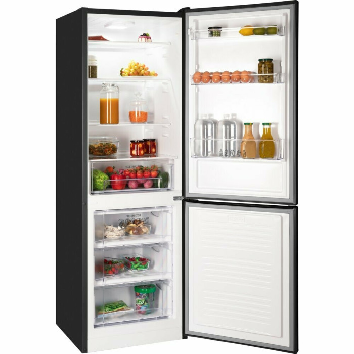 Двухкамерный отдельностоящий холодильник NORDFROST NRB 132 B с нижним расположением морозильной камеры имеет общий объем 305 л.